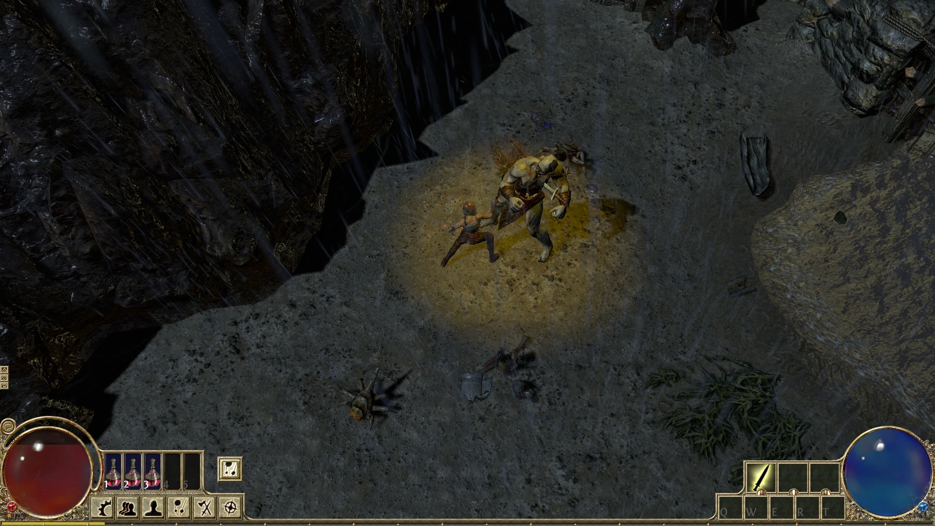 - The Cavern is the final area of Act 1 and presumably the player will emerge from the other side into Act 2. The area is very large and it's corridors twist and turn like a maze. At the center lies Merveil, the final boss encounter of Act 1. Expect a difficult fight.